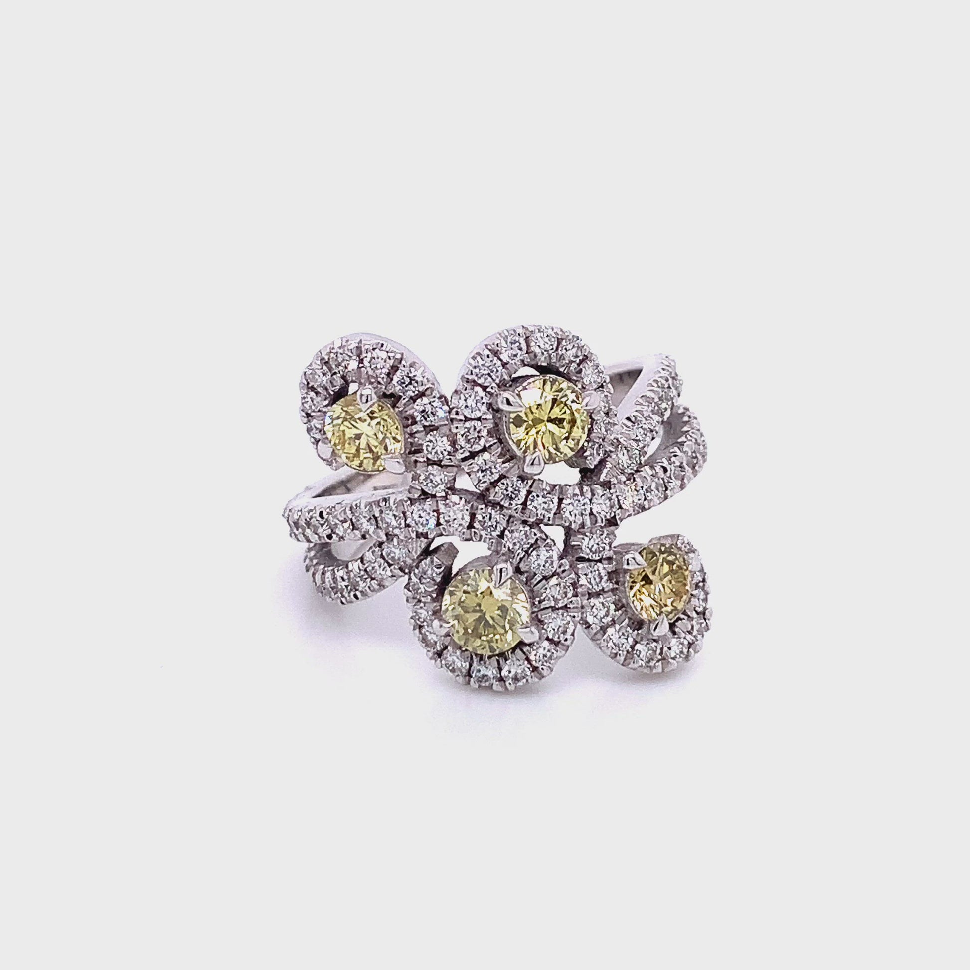 - Stone: 4 Yellow Rounds (0.85CT) and 95 White Round Diamonds